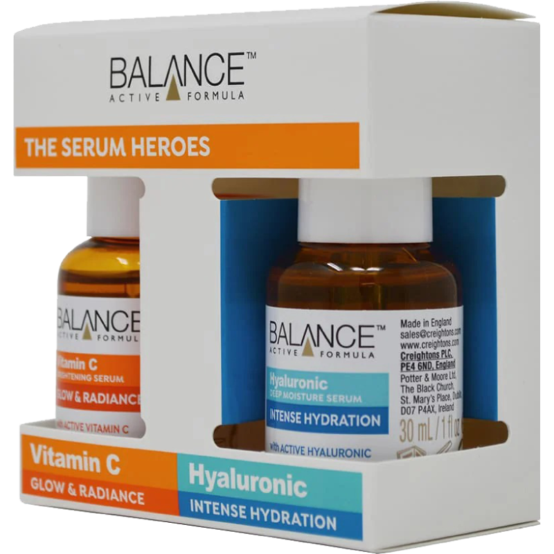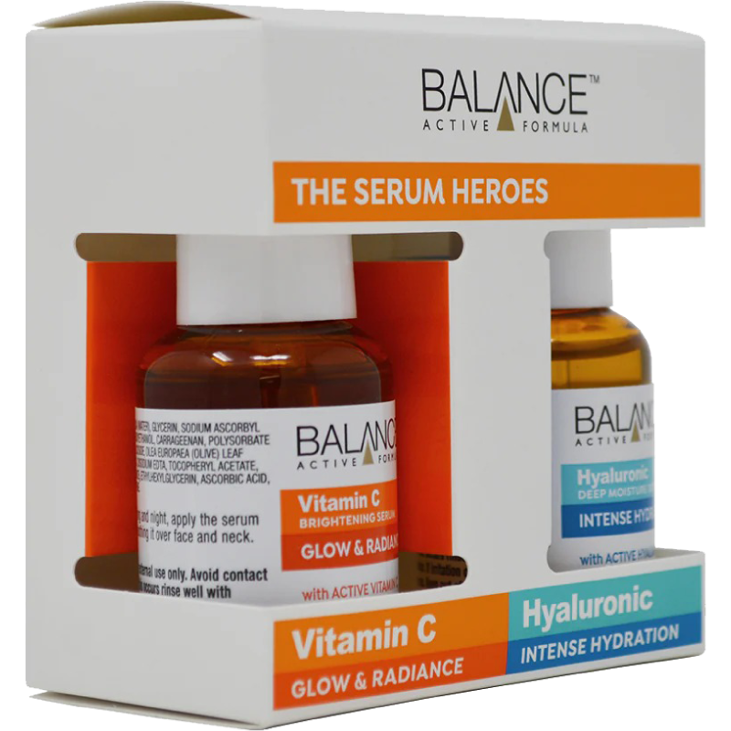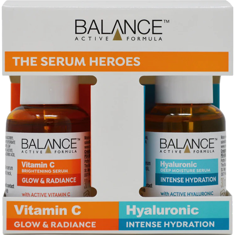 استمتعي ببشرة نضرة وصحية مع الثنائي المثالي من بالانس اّكتيف فورمولا. تجمع مجموعة The Serum Heroes بين قوة "فيتامين سي" لبشرة مشرقة وسحر "حمض الهيالورونيك" للترطيب العميق. روتين يومي وفعال يمنحكِ بشرة أكثر شباباَ في خطوتين فقط.