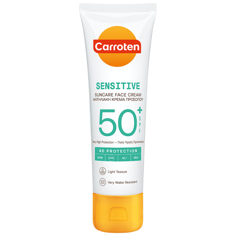 حماية قصوى لبشرتكِ الأكثر رقة! إذا كانت بشرتكِ تتحسس بسرعة من الشمس أو المنتجات العادية، فإن واقي الشمس Carroten Sensitive هو خياركِ الأمثل. صُمم بتركيبة متطورة وخالية من المكونات المهيجة ليوفر حماية رباعية “UVA, UVB, VL, IRA" لحماية مضاعفة من أشعة الشمس، مع الحفاظ على ترطيب البشرة وتهدئتها. إنه "الحارس الشخصي" الذي تحتاجه بشرتكِ يومياً دون قلق من الاحمرار أو الوخز.